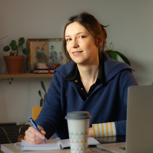 Lorsque nous travaillons ensemble, nous communiquons régulièrement (par écrit ou en visio) pour que tu suives l’avancement de ton projet et que je puisse répondre à toutes tes interrogations.